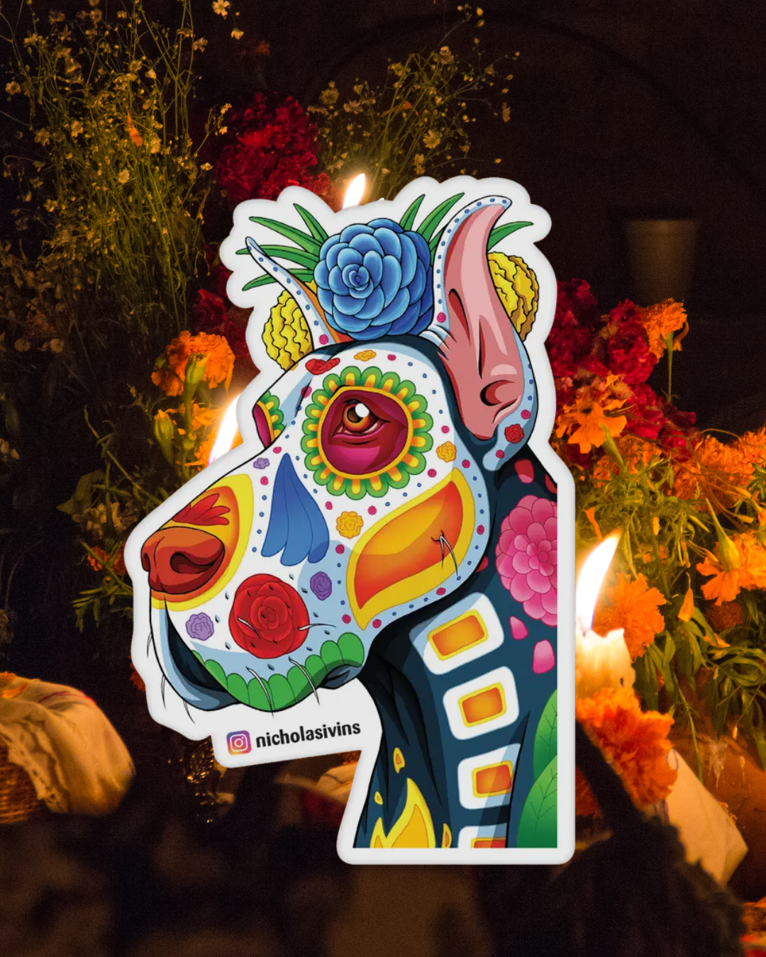 This glossy sticker measures approximately 3 x 5″ and features eye-popping artwork of Nicholas Ivins.