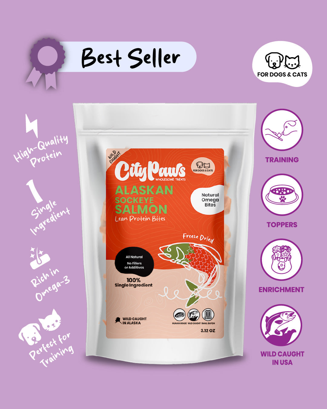 A wholesome, wild treat from the pristine waters of Alaska! 🌊 Packed with benefits and full of flavor, these bite-sized pieces are a hit with even the pickiest pets.