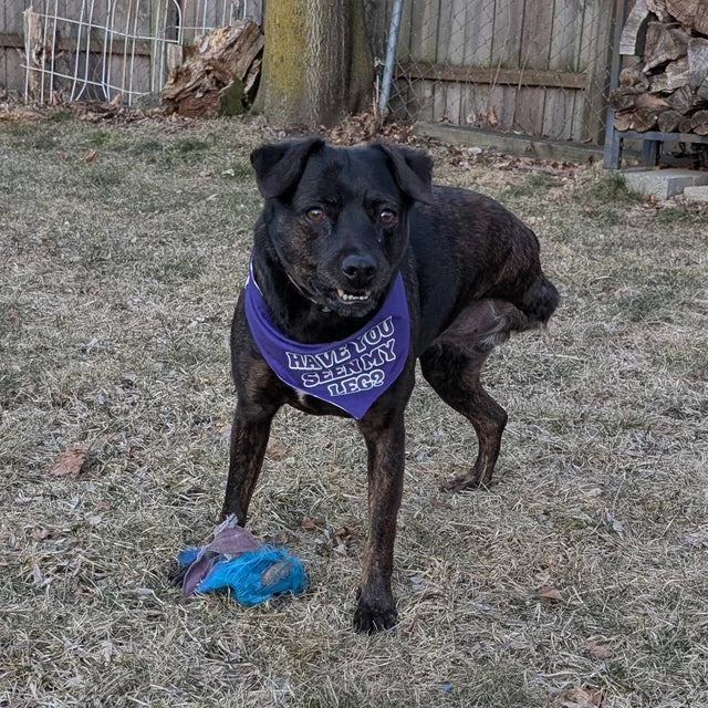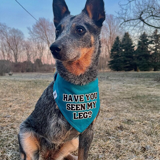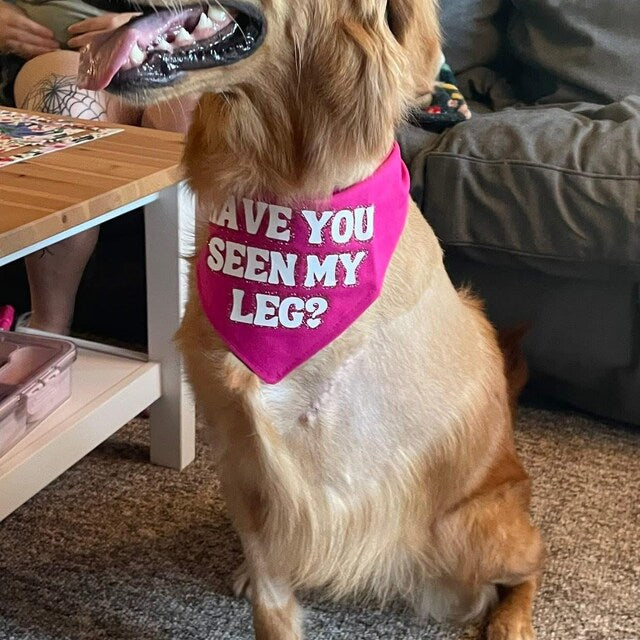 The bandana that started it all! Made from 100% cotton and double-sided for extra flair, this "Have you seen my leg" bandana features "Have you seen my leg?' iron-on vinyl designs and easy snap closures. Born from a fundraiser supporting Millers Prosthetic, it celebrates the incredible Tripod community we've built together. Wear it proudly and join the adventure!