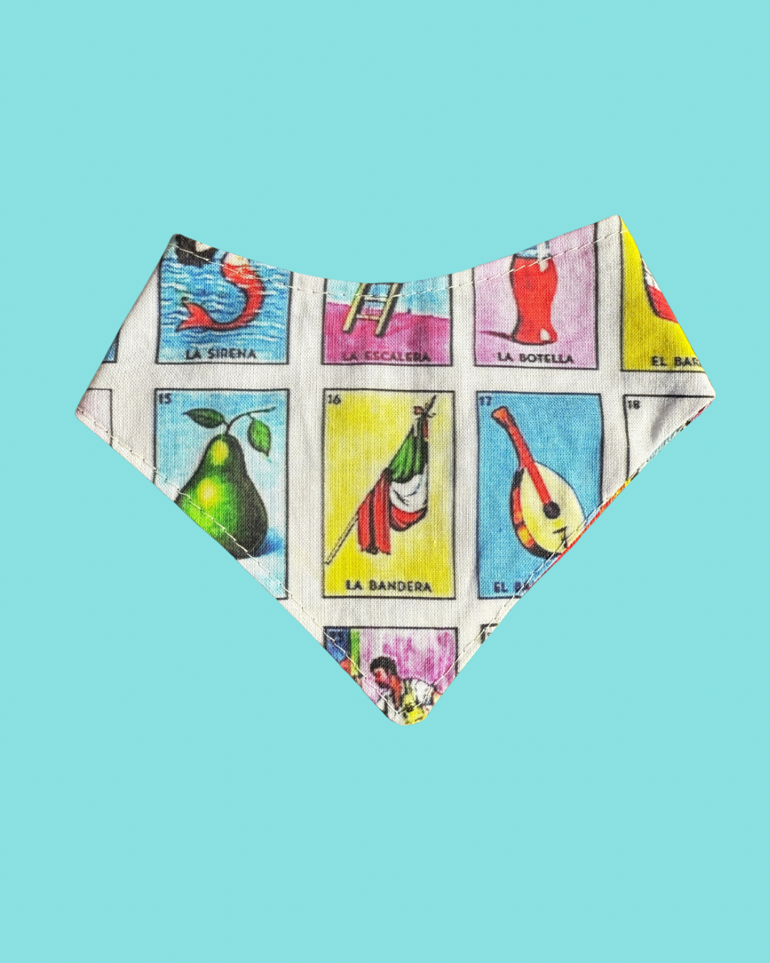 This double-sided Loteria Bandana features snaps for easy adjustment, making it versatile and comfortable for any occasion.