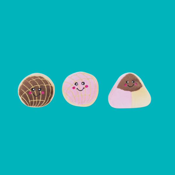 This 3-pack set includes a sweet assortment of Pan Dulce Miniz. 1 round squeaker inside of each..